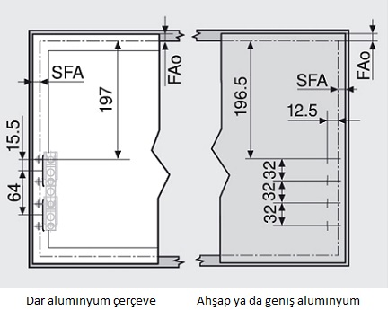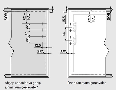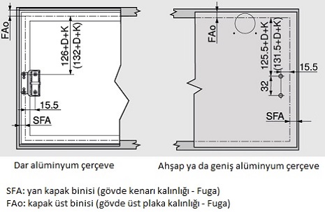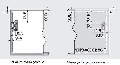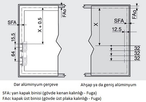 | H: Dıştan güç ünitesi pozisyonu yüksekliği | SFA: Yan kapak binisi (gövde kenarı kalınlığI - Fuga) | ||||||||||
